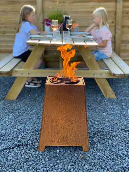 Quad är en perfekt produkt för terrass och altan där den skapar atmosfär, ljus och trivsel på kvällen. Förbränningen är mer eller mindre luktfri och det enda du hör är flammorna som dansar.